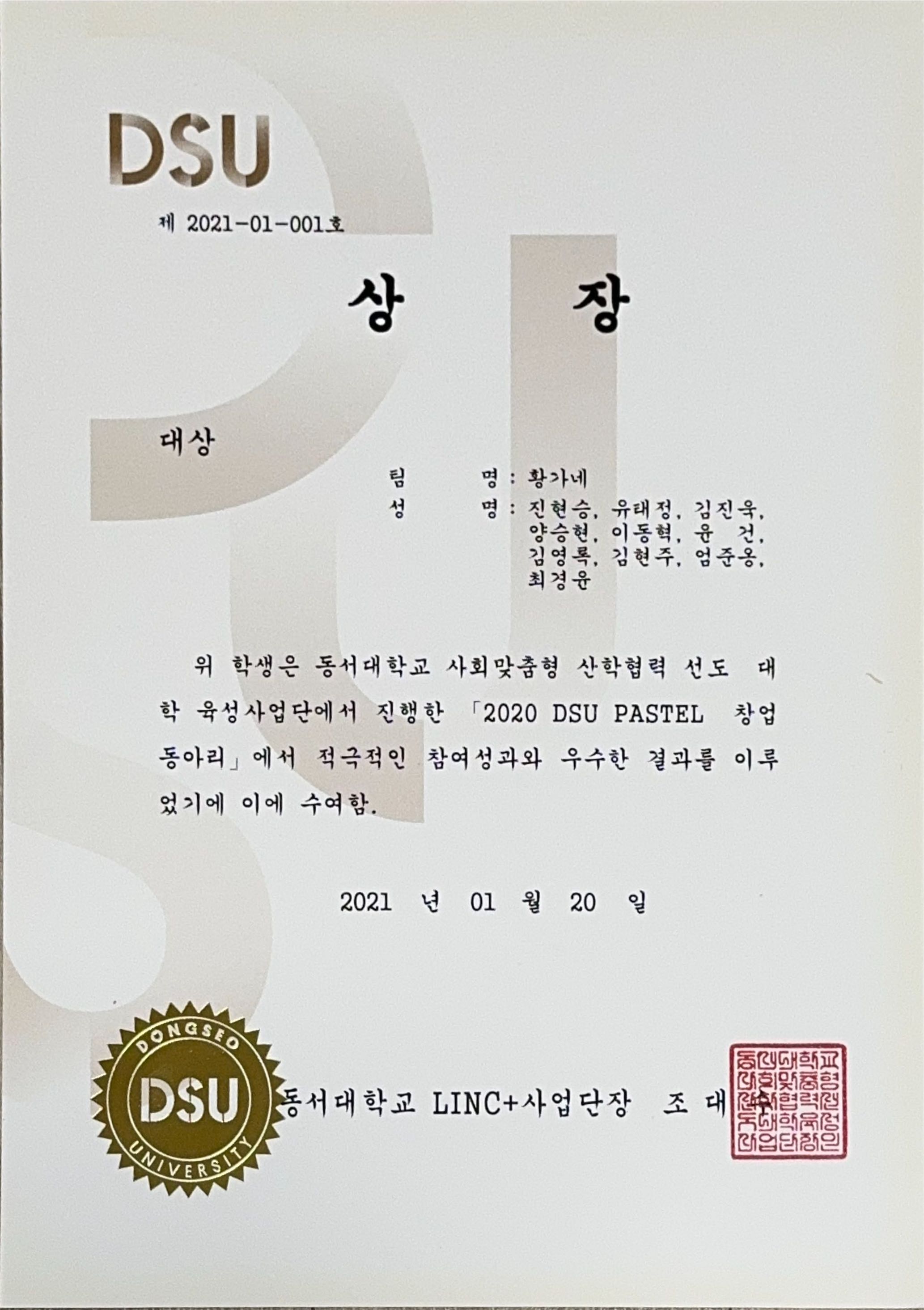 [Award] 2020 DSU PASTEL Entrepreneurship Club Team Grand Prize
