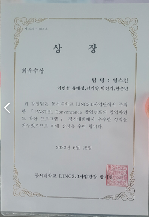 - 2022 Pastel Convergence 창업아이디어 경진대회 최우수상
